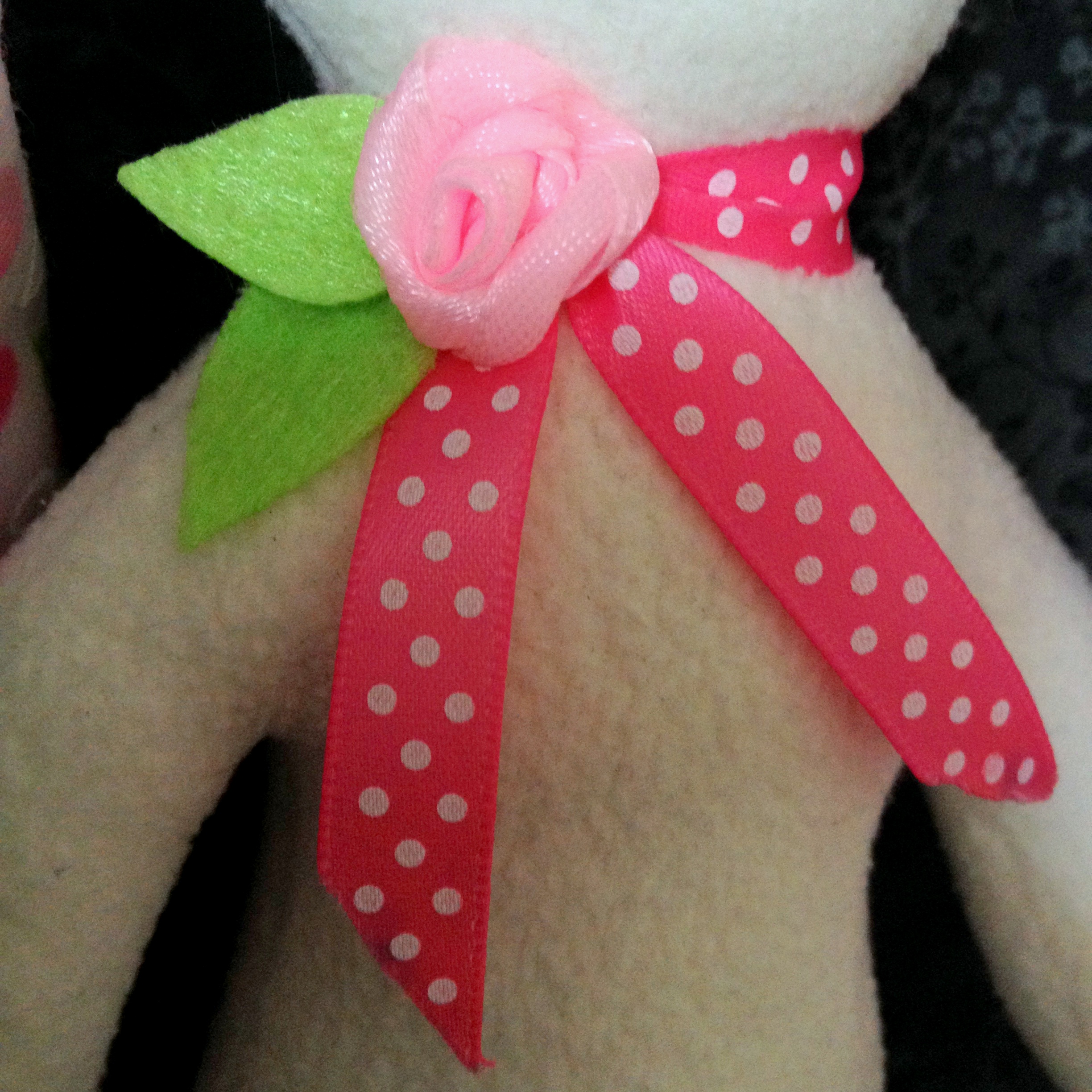 Белый флисовый зайка 21см ростиком с зелеными глазками и бантиком розочкой.