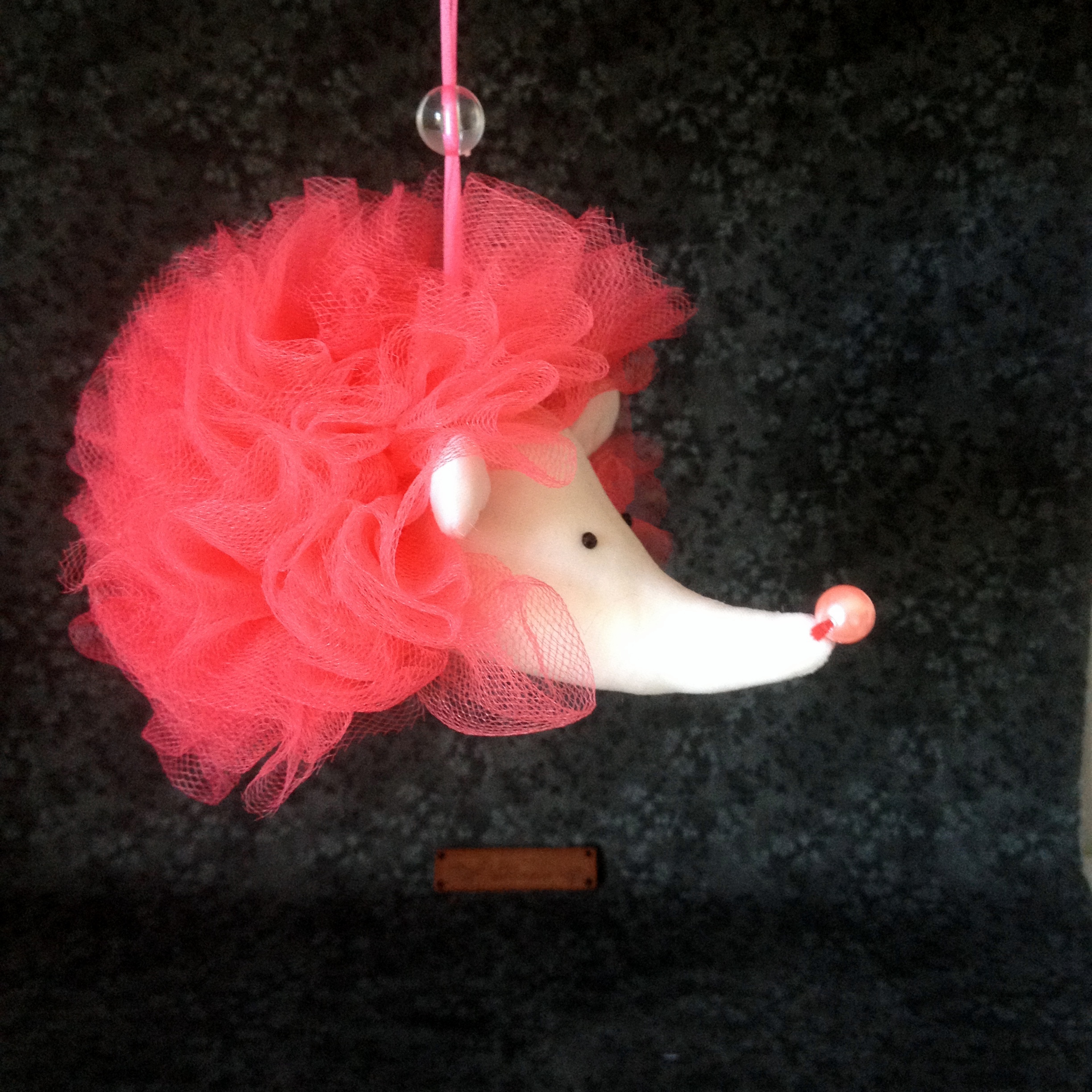 Хлопок, фатин, бусин, атласная лента, самоклеющиеся стразы для глазок.